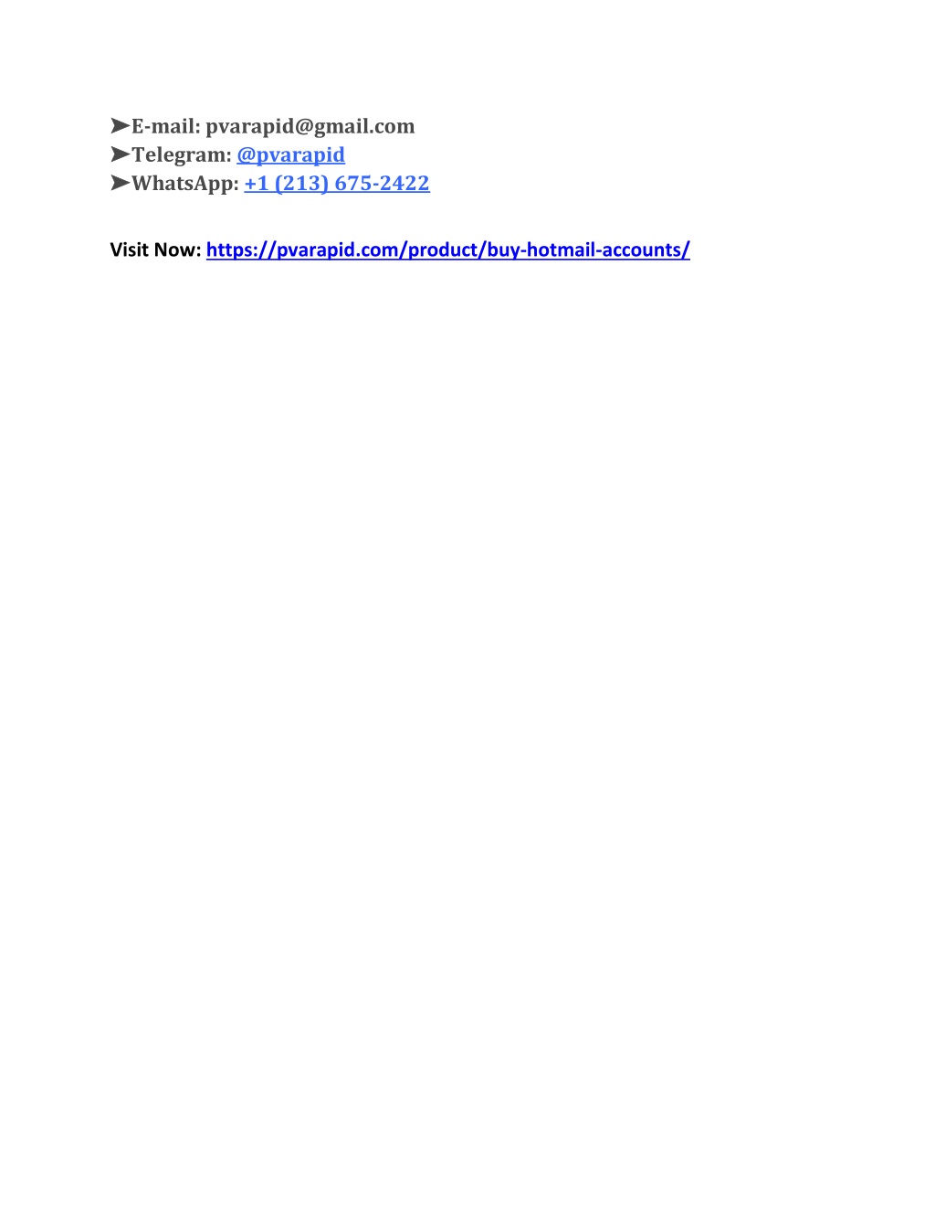 ➤ ➤E-mail: pvarapid@gmail.com ➤ ➤Telegram: @pvarapid ➤ ➤WhatsApp: +1 (213) 675-2422 Visit Now:https://pvarapid.com/product/buy-hotmail-accounts/