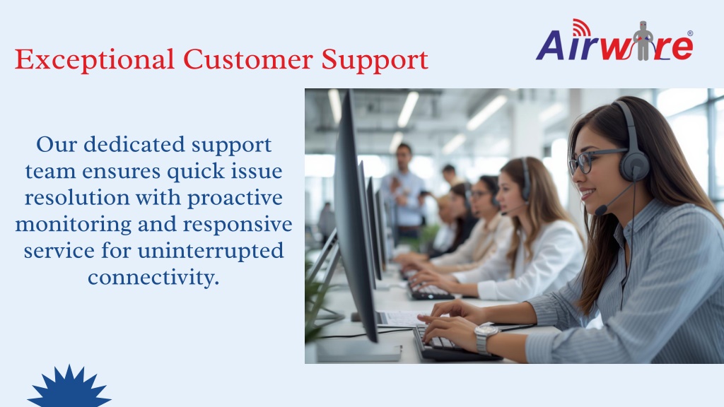 Exceptional Customer Support Our dedicated support team ensures quick issue resolution with proactive monitoring and responsive service for uninterrupted connectivity.