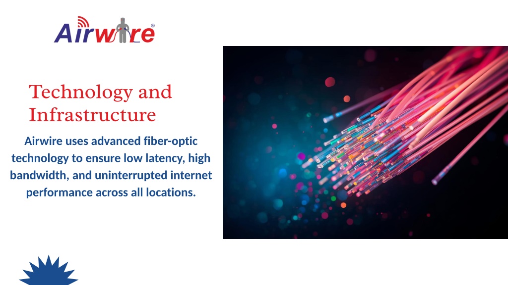 Technology and Infrastructure Airwire uses advanced fiber-optic technology to ensure low latency, high bandwidth, and uninterrupted internet performance across all locations.