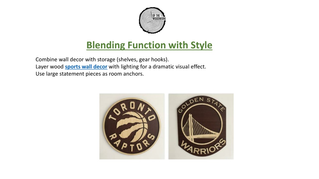 7. Why Wooden Sports Decor is So Good Timeless quality versus mass-produced prints. Eco-friendly, handmade designs. Purveys both contemporary and traditional styles. Adds warmth and character to walls.