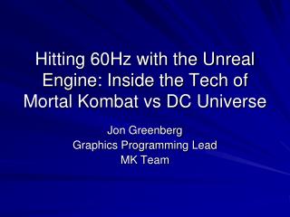 Hitting 60Hz with the Unreal Engine: Inside the Tech of Mortal Kombat vs DC Universe Jon Greenberg Graphics Programming Lead MK Team