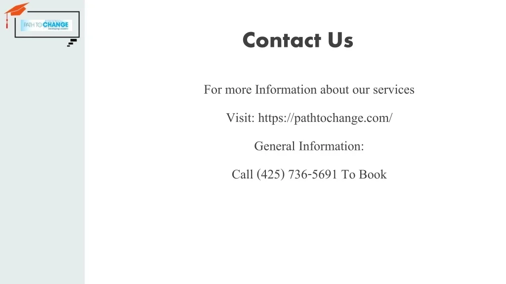 Contact Us For more Information about our services Visit: https://pathtochange.com/ General Information: Call (425) 736-5691 To Book