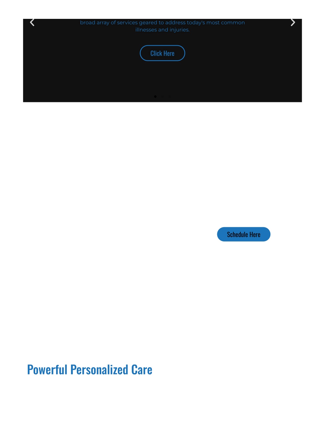 broad array of services geared to address today's most common broad array of services geared to address today's most common illnesses and injuries. illnesses and injuries. Click Here Click Here Schedule Here Powerful Personalized Care