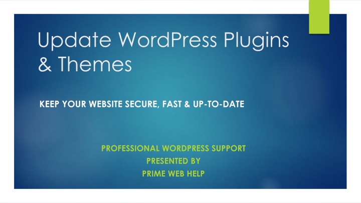 Update WordPress Plugins & Themes Keep Your Website Secure, Fast & Up-to-Date Professional WordPress Support Presented by Prime Web help