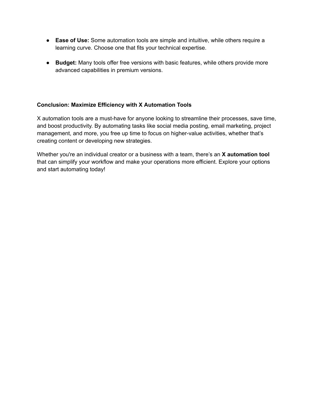 ● Ease of Use: Some automation tools are simple and intuitive, while others require a learning curve. Choose one that fits your technical expertise. ● Budget: Many tools offer free versions with basic features, while others provide more advanced capabilities in premium versions. Conclusion: Maximize Efficiency with X Automation Tools X automation tools are a must-have for anyone looking to streamline their processes, save time, and boost productivity. By automating tasks like social media posting, email marketing, project management, and more, you free up time to focus on higher-value activities, whether that’s creating content or developing new strategies. Whether you're an individual creator or a business with a team, there’s an X automation tool that can simplify your workflow and make your operations more efficient. Explore your options and start automating today!