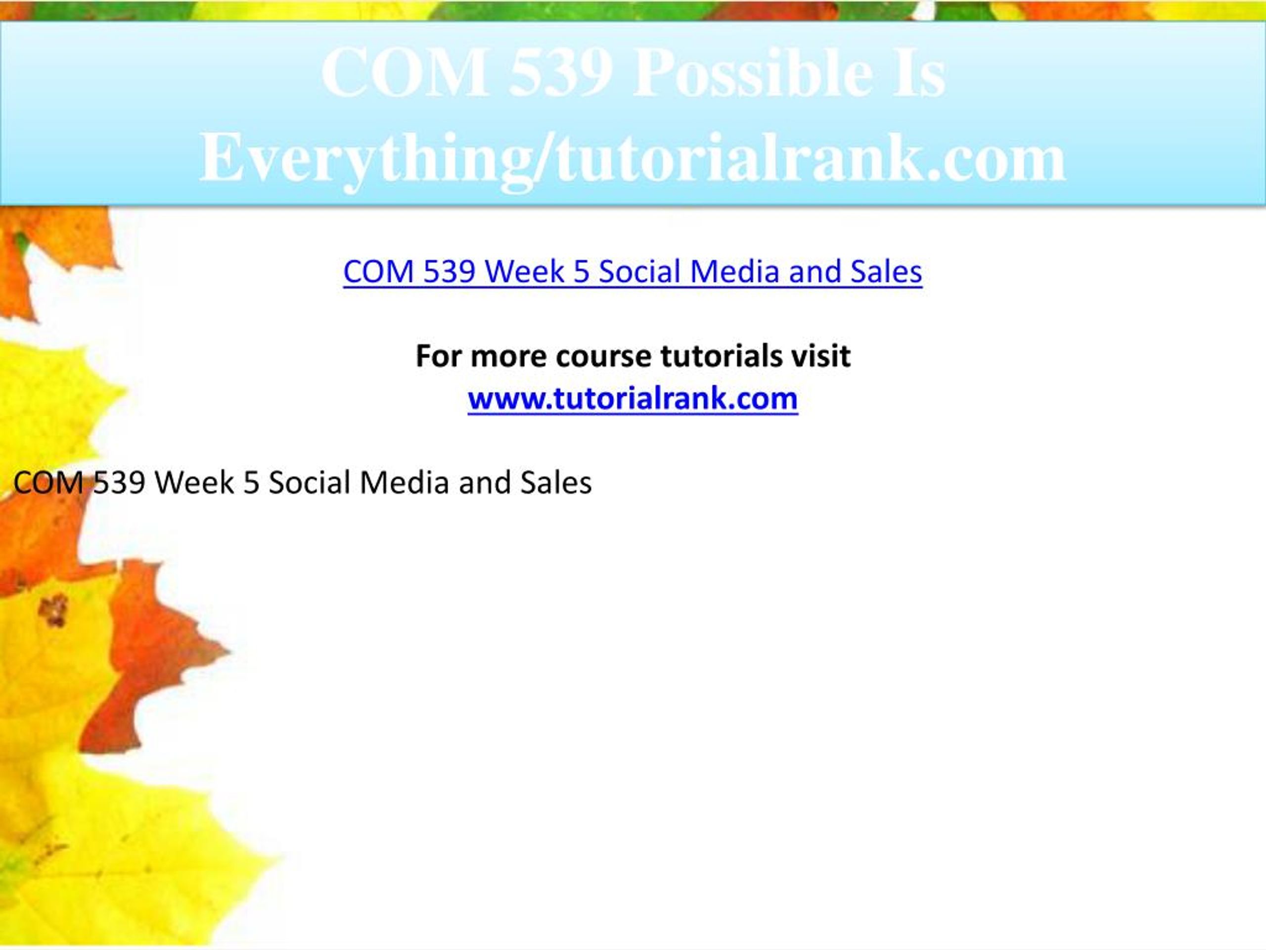 COM 539 Possible Is Everything/tutorialrank.com COM 539 Week 5 Social Media and Sales For more course tutorials visit www.tutorialrank.com COM 539 Week 5 Social Media and Sales