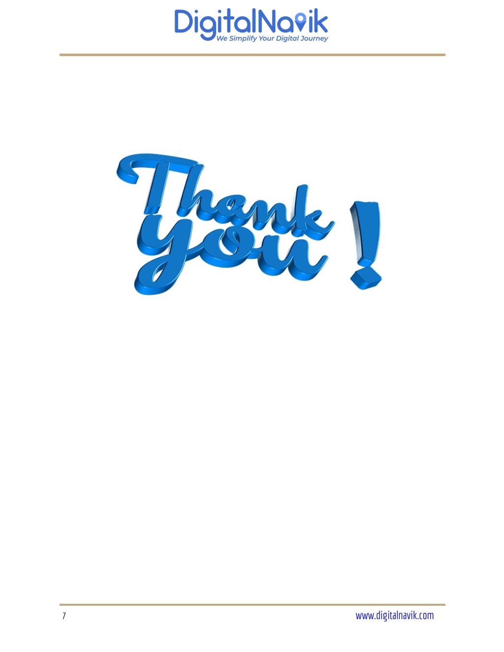 Contact Us Address: 2/421 Sector-2, Near Bithauli Crossing, Jankipuram Extension, Lucknow - 226031 Email: info@digitalnavik.com Phone: 91407 79702 Website: www.digitalnavik.com www.digitalnavik.com 6