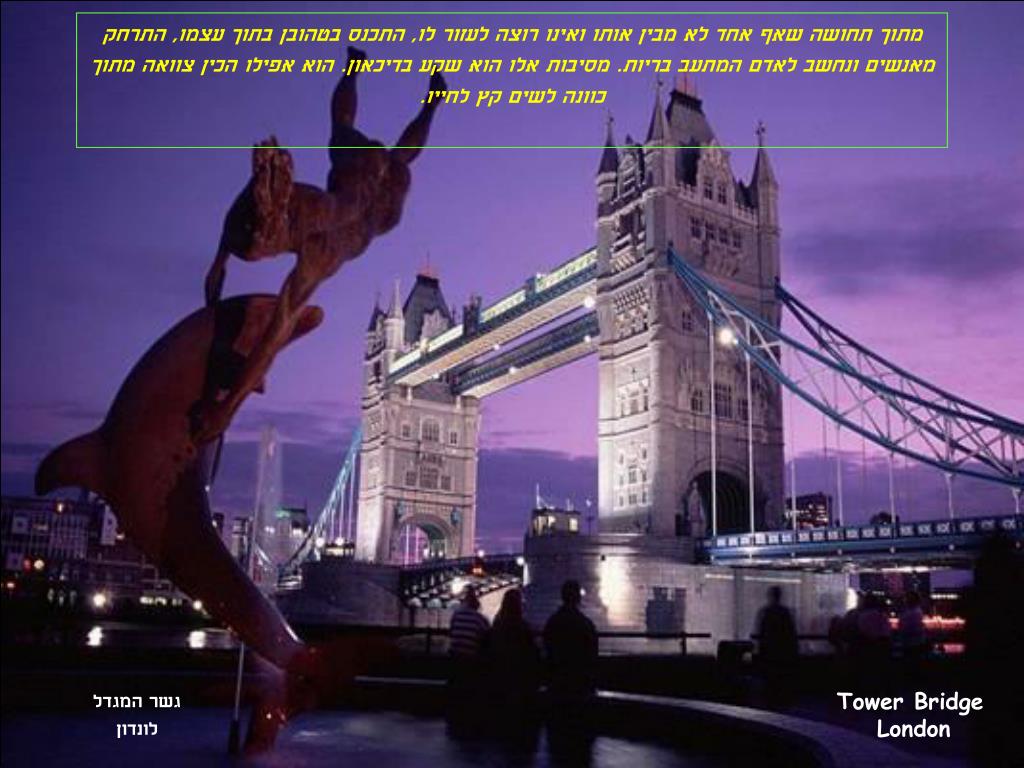מתוך תחושה שאף אחד לא מבין אותו ואינו רוצה לעזור לו, התכנס בטהובן בתוך עצמו, התרחק מאנשים ונחשב לאדם המתעב בריות. מסיבות אלו הוא שקע בדיכאון. הוא אפילו הכין צוואה מתוך כוונה לשים קץ לחייו. גשר המגדל לונדון Tower Bridge London