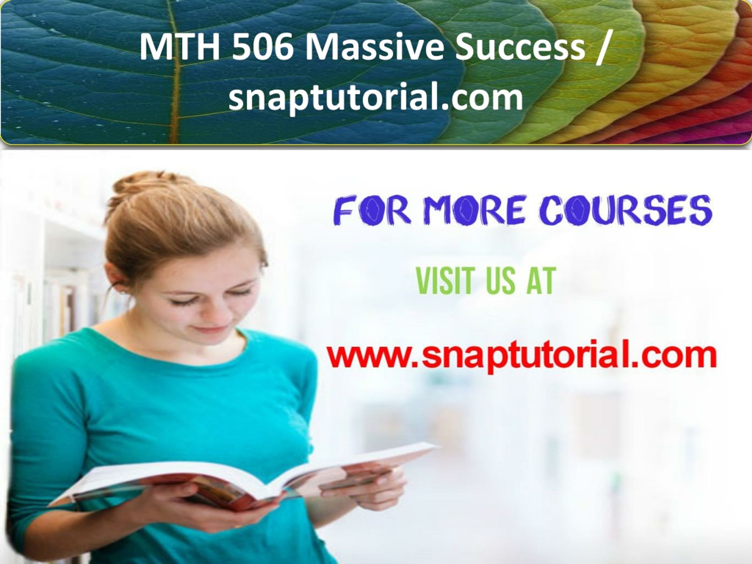 MTH 506 Massive Success / snaptutorial.com MTH 506 Week 6 Learning Team Assignment Mathematics Unit For more classes visit www.snaptutorial.com MTH 506 Week 6 Learning Team Assignment Mathematics Unit