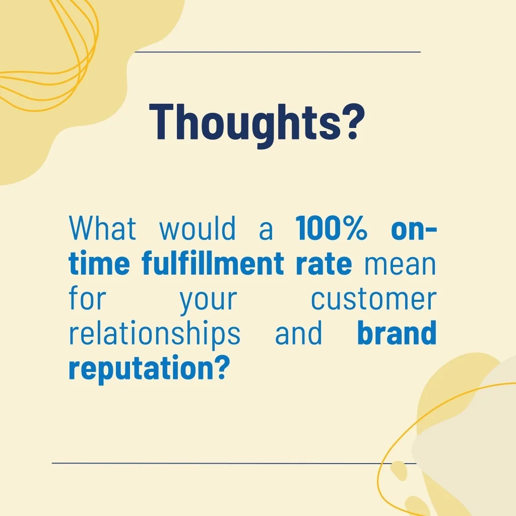 Thoughts? What would a 100% on- time fulfillment rate mean for your relationships and brand reputation? customer