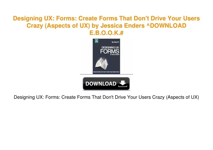 "23 minutes ago Read link https://goldenboy300.blogspot.com/?book=994347057 .<br><br>(Download Free) Designing UX: Forms: Create Forms That Don't Drive Your Users Crazy (Aspects of UX) by Jessica Enders by Full PDF Online<br><br>Book Summary Designing UX: Forms: Create Forms That Don't Drive Your Users Crazy (Aspects of UX) by Jessica Enders<br>Designing UX: Forms: Create Forms That Don't Drive Your Users Crazy (Aspects of UX)<br><br>About Designing UX: Forms: Create Forms That Don't Drive Your Users Crazy (Aspects of UX) by Jessica Enders<br><br>Incorporating this remarkable book Designing UX: Forms: Create Forms That