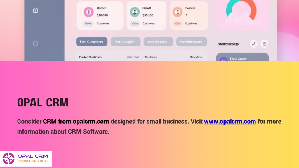 Consider CRM from opalcrm.com designed for small business. Visit www.opalcrm.com for more information about CRM Software. Opal CRM