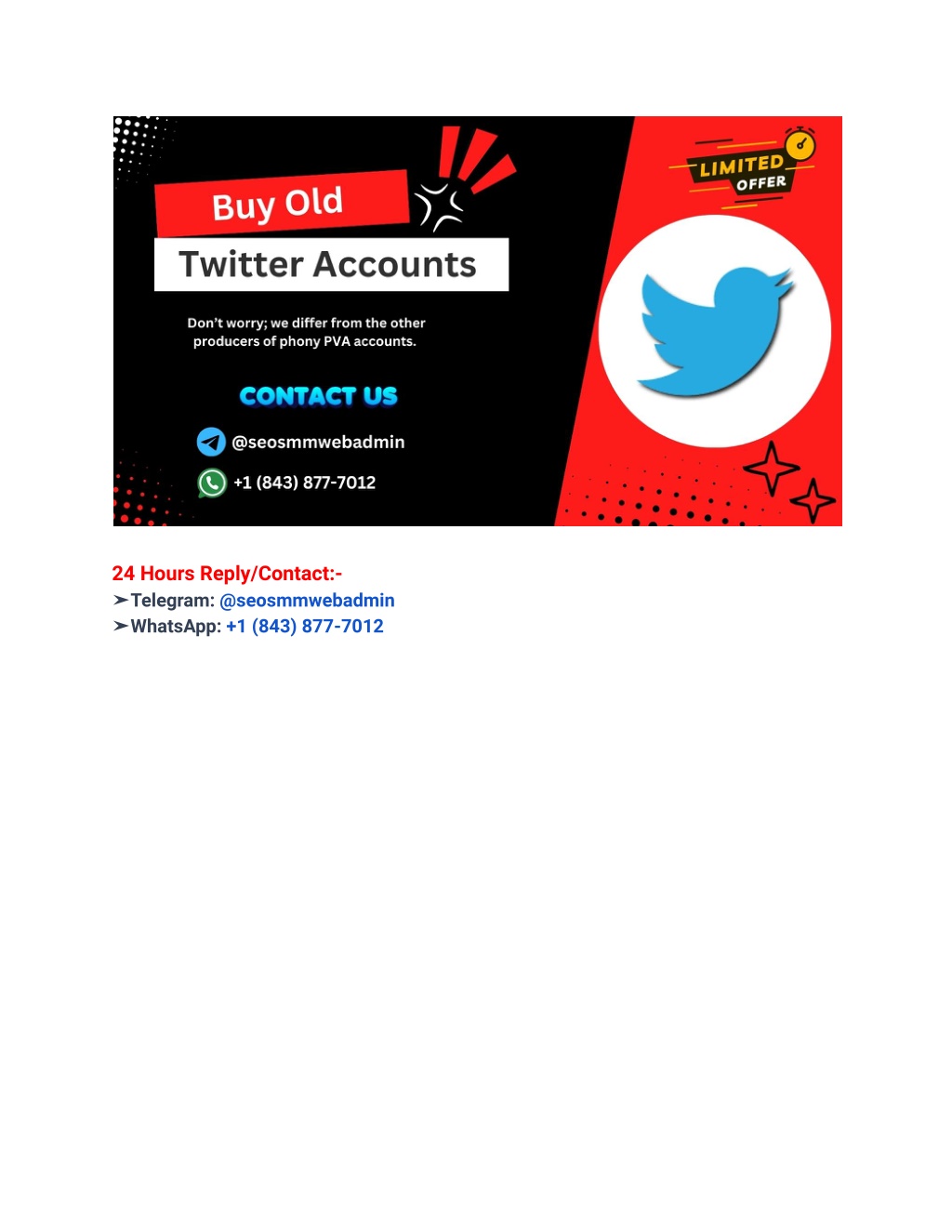 10 Best Sites to Buy Twitter (X) Accounts in 2025 24 Hours Reply/Contact:- ➤Telegram: @seosmmwebadmin ➤WhatsApp: +1 (843) 877-7012 In the fast-running race of digitization and the supremacy of social media, having a sound base on Twitter will serve to be one pivotal factor. Whether it's for a business firm, influencer, or even an entrepreneur, buying any second-hand X account will jack up your brand name in no time. To enable one to do safe and relevant transactions, let me enlist before you the top 10 websites to buy a Twitter-X Account in 2025: 1. PlayerUp PlayerUp is by far one of the most popular websites to buy or sell social media accounts. With a secure escrow system, it's a great place for investing in an X account suited for your needs.