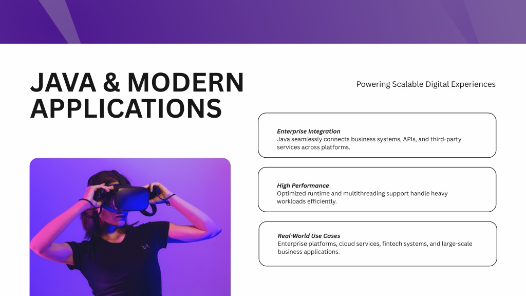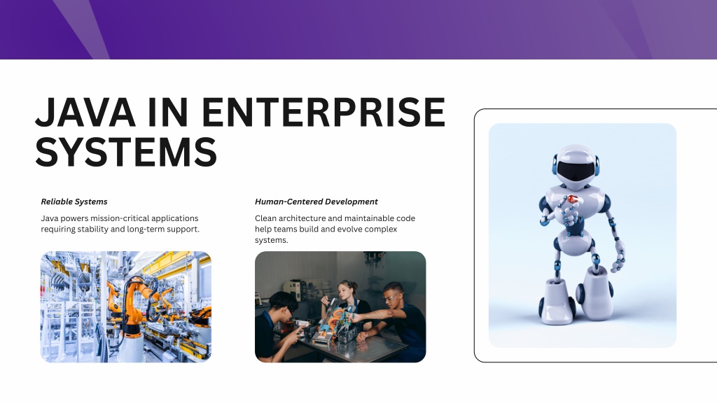 Java is the backbone of modern enterprise applications, powering secure, scalable, and high-performance software across industries. This presentation explores how Java drives digital transformation, supports cloud-ready architectures, strengthens application security, and enables long-term business growth. Ideal for enterprises, startups, and technology leaders looking to build reliable, future-ready solutions with Java.