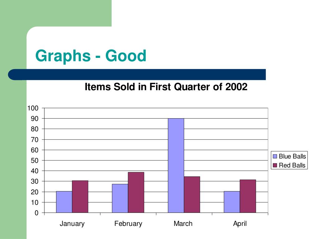 14. Graphs - Good • Use graphs rather than just charts and words • Data in graphs is easier to comprehend & retain than is raw data • Trends are easier to visualize in graph form • Always title your graphs
