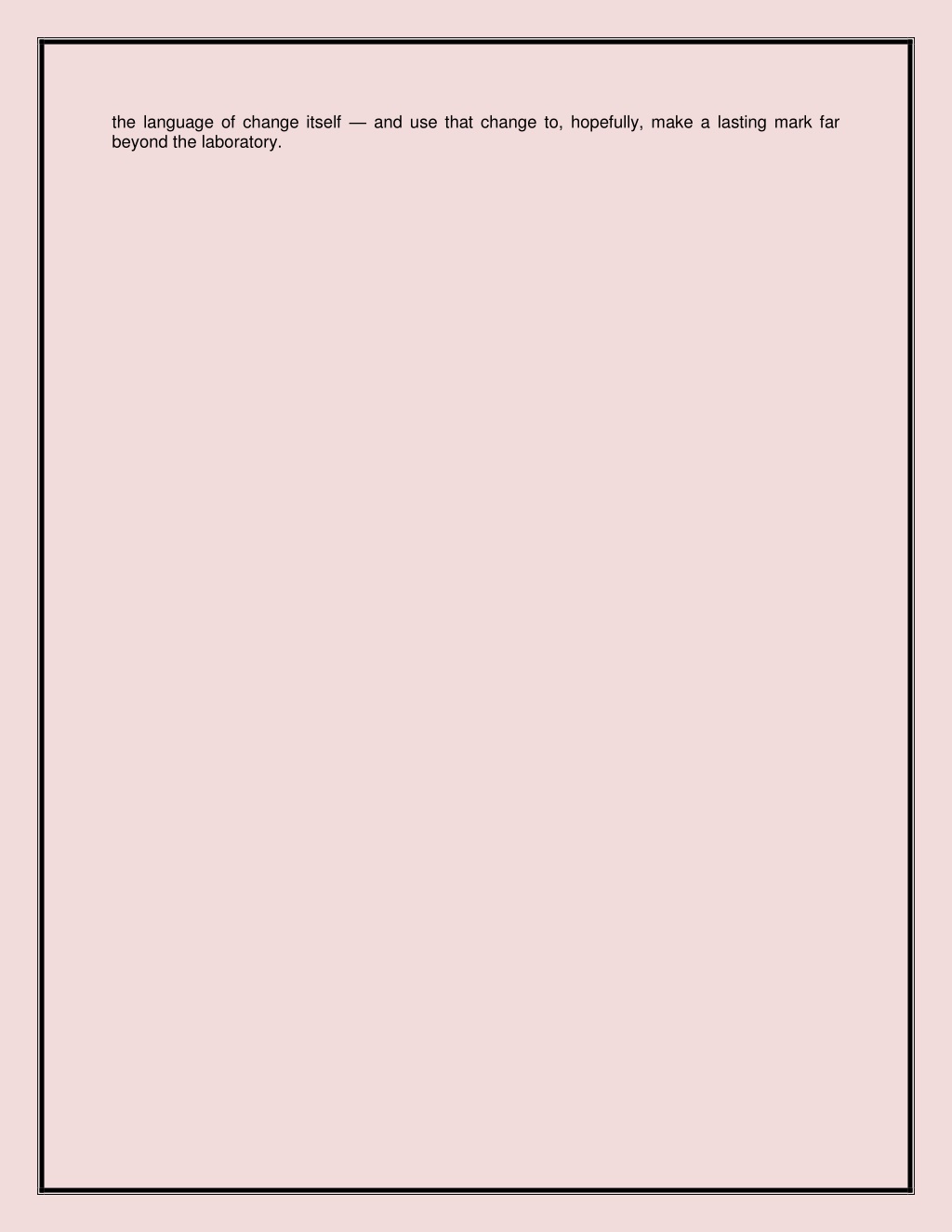 the language of change itself — and use that change to, hopefully, make a lasting mark far beyond the laboratory.