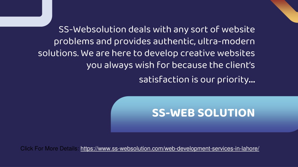 SS-Websolutiondeals with any sort of website problems and provides authentic, ultra-modern solutions. We are here to develop creative websites you always wish for because the client’s satisfaction is our priority… SS-WEB SOLUTION Click For More Details: https://www.ss-websolution.com/web-development-services-in-lahore/