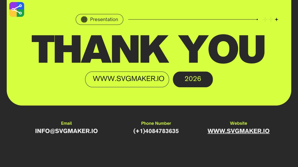 Presentation THANK YOU WWW.SVGMAKER.IO 2026 Website Email Phone Number (+1)4084783635 INFO@SVGMAKER.IO WWW.SVGMAKER.IO