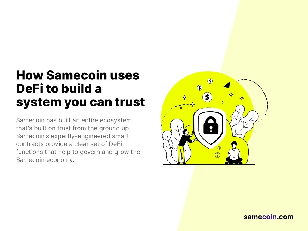 How Samecoin uses DeFi to build a system you can trust Samecoin has built an entire ecosystem that's built on trust from the ground up. Samecoin's expertly-engineered smart contracts provide a clear set of DeFi functions that help to govern and grow the Samecoin economy. samecoin.com