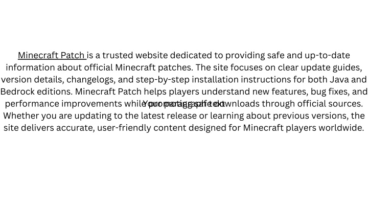 Download the latest Minecraft patch safely and free u2014 get updates, bug fixes, and improvements to enhance your game performance instantly.