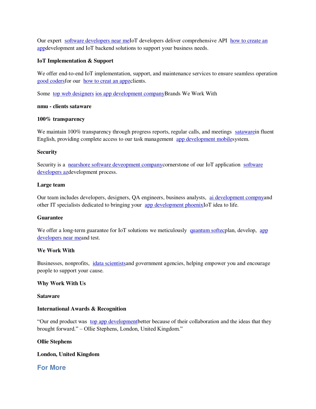 Our expert software developers near meIoT developers deliver comprehensive API how to create an appdevelopment and IoT backend solutions to support your business needs. IoT Implementation & Support We offer end-to-end IoT implementation, support, and maintenance services to ensure seamless operation good codersfor our how to creat an appzclients. Some top web designers ios app development companyBrands We Work With nmu - clients sataware 100% transparency We maintain 100% transparency through progress reports, regular calls, and meetings satawarein fluent English, providing complete access to our task management app development mobilesystem. Security Security is a nearshore software deveopment companycornerstone of our IoT application software developers azdevelopment process. Large team Our team includes developers, designers, QA engineers, business analysts, ai development compnyand other IT specialists dedicated to bringing your app development phoenixIoT idea to life. Guarantee We offer a long-term guarantee for IoT solutions we meticulously quantum softecplan, develop, app developers near meand test. We Work With Businesses, nonprofits, idata scientistsand government agencies, helping empower you and encourage people to support your cause. Why Work With Us Sataware International Awards & Recognition “Our end product was top app developmentbetter because of their collaboration and the ideas that they brought forward.” –Ollie Stephens, London, United Kingdom.” Ollie Stephens London, United Kingdom For More