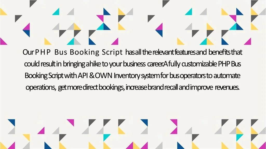 Our PHP Bus Booking Script has all the relevant features and benefits that could result in bringing a hike to your business career.A fully customizable PHP Bus Booking Script with API & OWN Inventory system for bus operators to automate operations, get more direct bookings, increase brand recall and improve revenues.