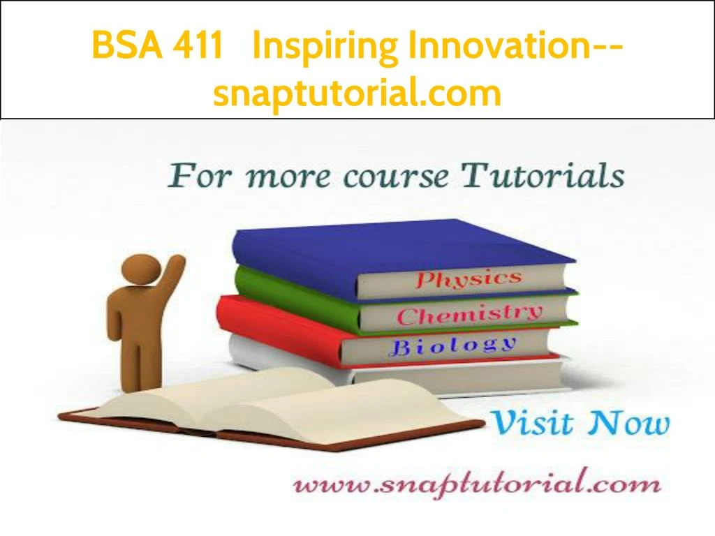 BSA 411 Inspiring Innovation--snaptutorial.com BSA 411 Entire Course For more classes visit www.snaptutorial.com BSA 411 Week 1 DQ 1 BSA 411 Week 1 DQ 2 BSA 411 Week 1 DQ 3 BSA 411 Week 1 DQ 4 BSA 411 Week 1 DQ 5 BSA 411 Week 2 Indvidual Assignment Business Application System Proposal BSA 411 Week 2 DQ 1 BSA 411 Week 2 DQ 2
