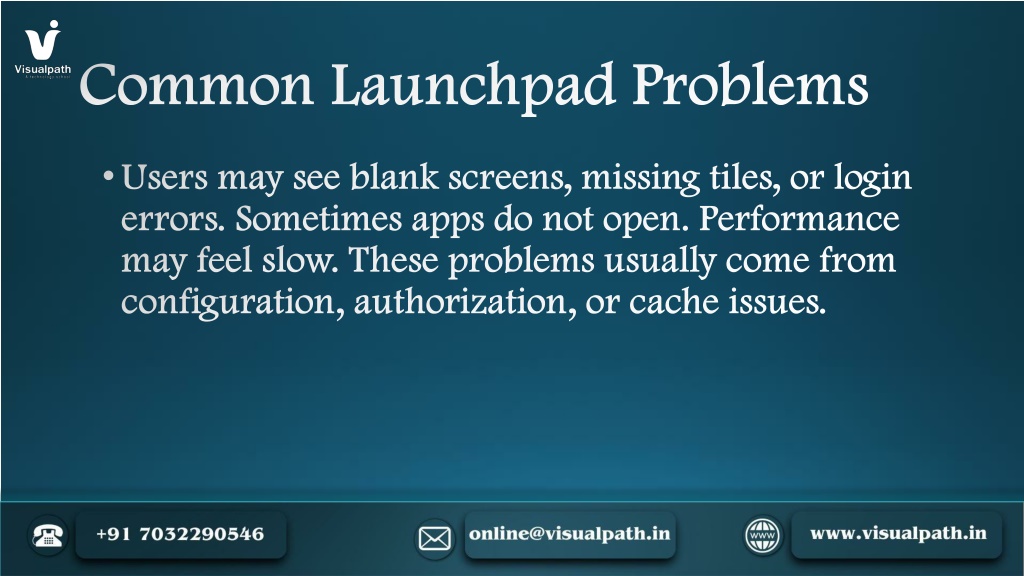 3. Common Launchpad Problems • Users may see blank screens, missing tiles, or login errors. Sometimes apps do not open. Performance may feel slow. These problems usually come from configuration, authorization, or cache issues.