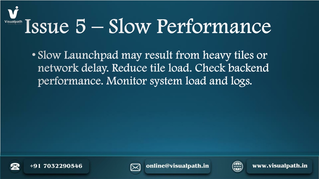 8. Issue 5 – Slow Performance • Slow Launchpad may result from heavy tiles or network delay. Reduce tile load. Check backend performance. Monitor system load and logs.