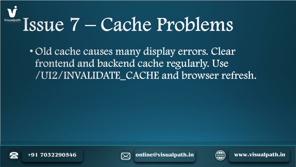 10. Issue 7 – Cache Problems • Old cache causes many display errors. Clear frontend and backend cache regularly. Use /UI2/INVALIDATE_CACHE and browser refresh.