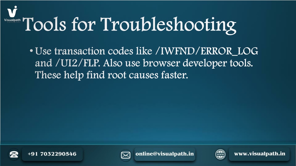 12. Tools for Troubleshooting • Use transaction codes like /IWFND/ERROR_LOG and /UI2/FLP. Also use browser developer tools. These help find root causes faster.