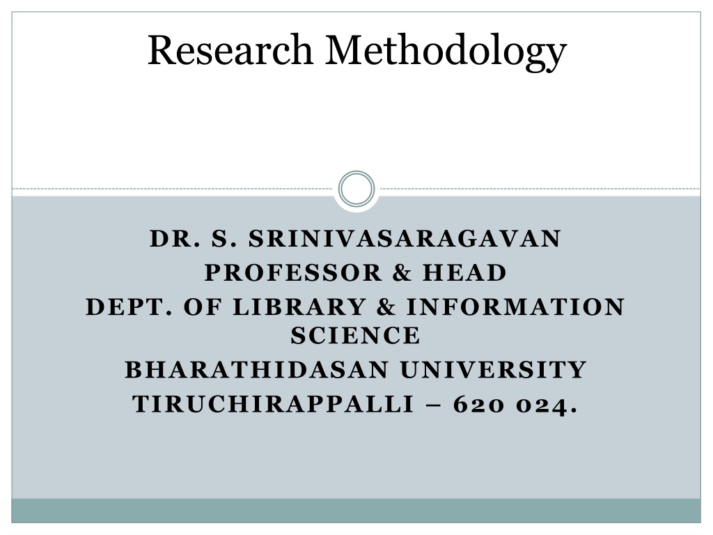 Research Methodology Dr. S. Srinivasaragavan Professor & head Dept. of library & information science Bharathidasan university Tiruchirappalli – 620 024.