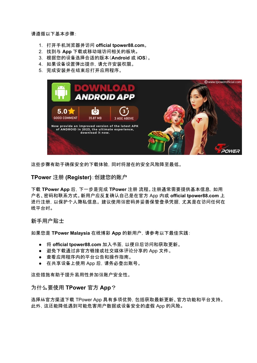 u63a2u7d22u9002u5408u521du5b66u8005u7684 PDFuff0cu5176u4e2du89e3u91cau4e86u9a6cu6765u897fu4e9au7528u6237u5982u4f55u5b89u5168u4e0bu8f7d TPower u6e38u620fu5e94u7528u7a0bu5e8fu3001u5b8cu6210u5e10u6237u8bbeu7f6eu4ee5u53cau5b89u5168u5730u8bbfu95eeu5e73u53f0u529fu80fdu3002u5b66u4e60u6700u4f73u5b9eu8df5uff0cu907fu514du975eu5b98u65b9u94feu63a5uff0cu5e76u81eau4fe1u5730u5f00u59cbu3002u7acbu5373u8bbfu95ee www.tpower88.com/zh-hans u4e0bu8f7du5b98u65b9 TPower u5e94u7528u7a0bu5e8fuff0cu4ee5u83b7u53d6u7ecfu8fc7u9a8cu8bc1u7684u8bbfu95eeu548cu66f4u65b0u3002