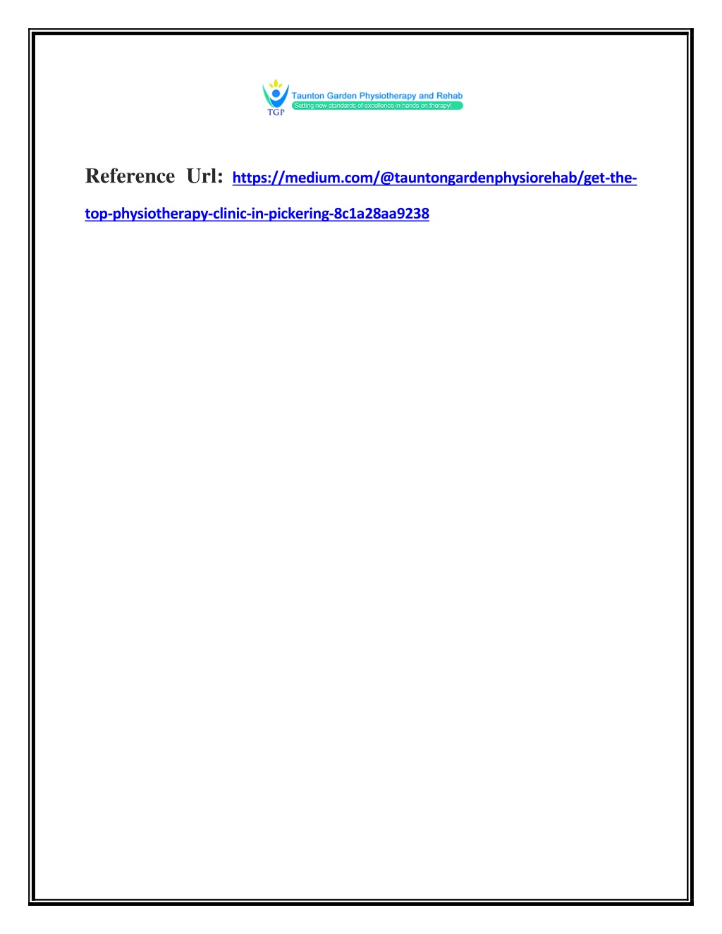 Reference Url:https://medium.com/@tauntongardenphysiorehab/get-the- top-physiotherapy-clinic-in-pickering-8c1a28aa9238