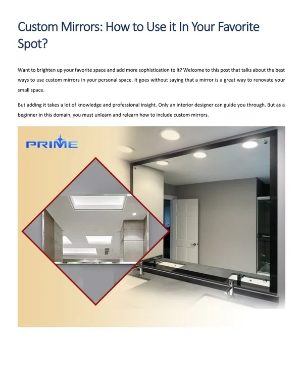 Custom Mirrors: How to Use it In Your Custom Mirrors: How to Use it In Your Favorite Spot Spot? ? Favorite Want to brighten up your favorite space and add more sophistication to it? Welcome to this post that talks about the best ways to use custom mirrors in your personal space. It goes without saying that a mirror is a great way to renovate your small space. But adding it takes a lot of knowledge and professional insight. Only an interior designer can guide you through. But as a beginner in this domain, you must unlearn and relearn how to include custom mirrors.