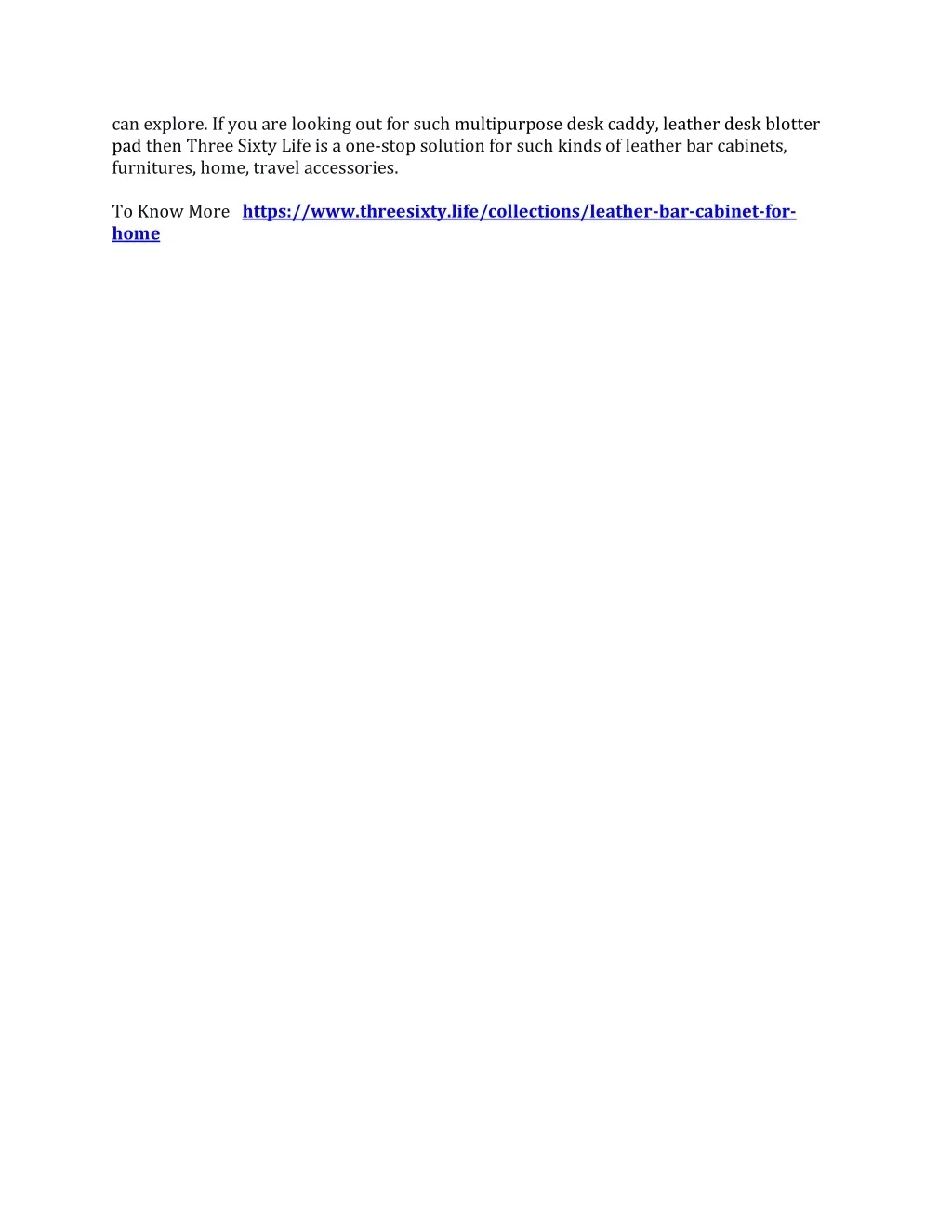 can explore. If you are looking out for such multipurpose desk caddy, leather desk blotter pad then Three Sixty Life is a one-stop solution for such kinds of leather bar cabinets, furnitures, home, travel accessories. To Know More https://www.threesixty.life/collections/leather-bar-cabinet-for- home