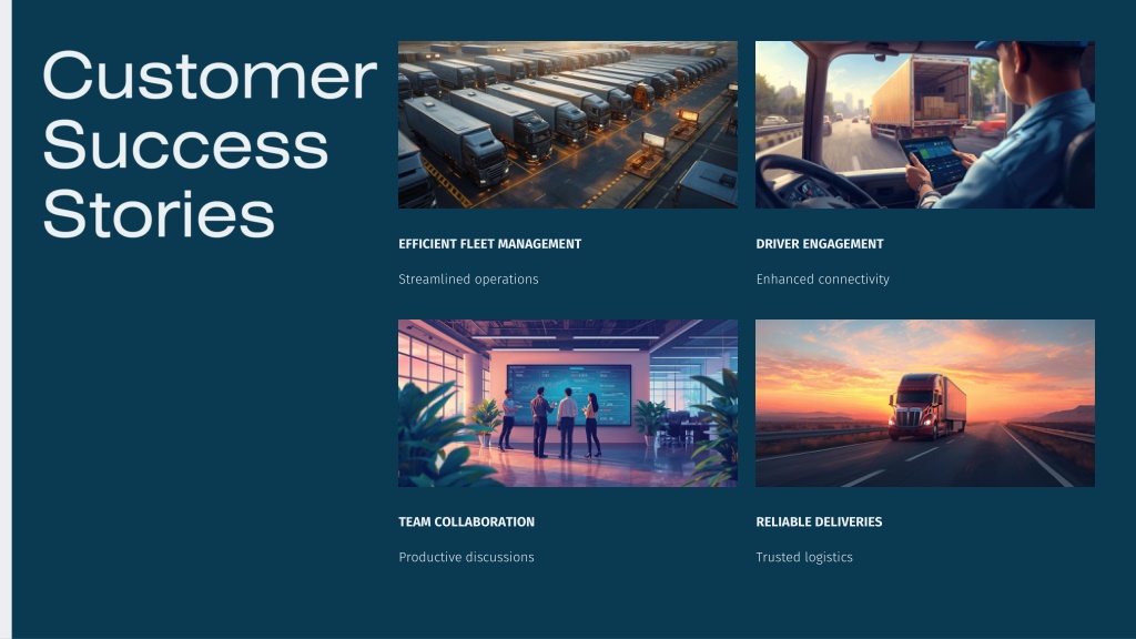 4. EFFICIENT FLEET MANAGEMENT • DRIVER ENGAGEMENT • TEAM COLLABORATION • RELIABLE DELIVERIES • Customer Success Stories • Streamlined operations • Enhanced connectivity • Productive discussions • Trusted logistics