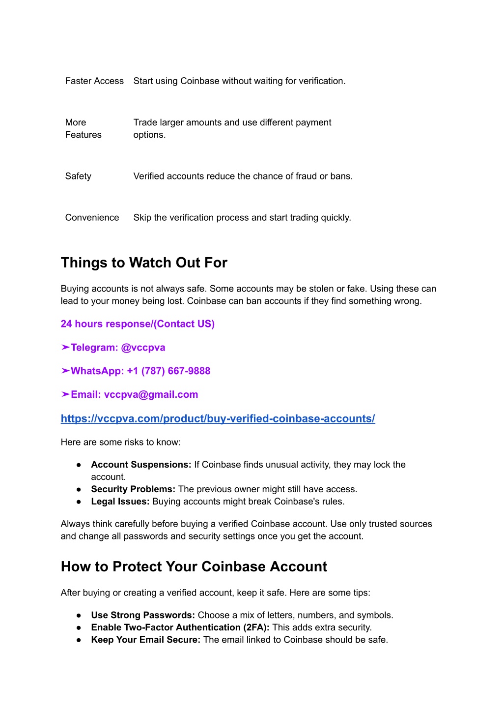 24 hours response/(Contact US)<br><br>u27a4Telegram: @vccpva<br>u27a4WhatsApp: 1 (787) 667-9888<br>u27a4Email: vccpva@gmail.com<br>https://vccpva.com/product/buy-verified-coinbase-accounts/<br>