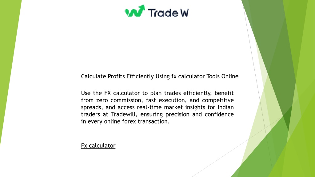 Calculate Profits Efficiently Using fx calculator Tools Online Use the FX calculator to plan trades efficiently, benefit from zero commission, fast execution, and competitive spreads, and access real-time market insights for Indian traders at Tradewill, ensuring precision and confidence in every online forex transaction. Fx calculator
