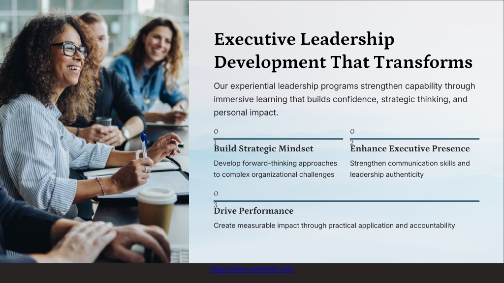 https://www.verityintl.com/ Executive Leadership Development That Transforms Our experiential leadership programs strengthen capability through immersive learning that builds confidence, strategic thinking, and personal impact. 01 02 Build Strategic Mindset Enhance Executive Presence Develop forward-thinking approaches to complex organizational challenges Strengthen communication skills and leadership authenticity 03 Drive Performance Create measurable impact through practical application and accountability