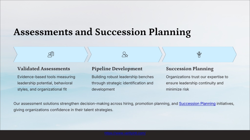 https://www.verityintl.com/ Assessments and Succession Planning Validated Assessments Pipeline Development Succession Planning Evidence-based tools measuring leadership potential, behavioral styles, and organizational fit Building robust leadership benches through strategic identification and development Organizations trust our expertise to ensure leadership continuity and minimize risk Our assessment solutions strengthen decision-making across hiring, promotion planning, and Succession Planning initiatives, giving organizations confidence in their talent strategies.