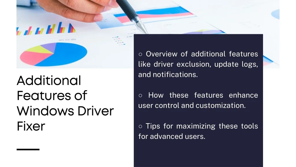 ○ Overview of additional features like driver exclusion, update logs, and notifications. ○ How these features enhance user control and customization. ○ Tips for maximizing these tools for advanced users. Additional Features of Windows Driver Fixer