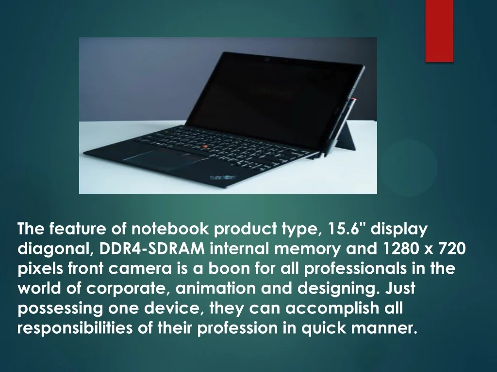 The feature of notebook product type, 15.6" display diagonal, DDR4-SDRAM internal memory and 1280 x 720 pixels front camera is a boon for all professionals in the world of corporate, animation and designing. Just possessing one device, they can accomplish all responsibilities of their profession in quick manner.