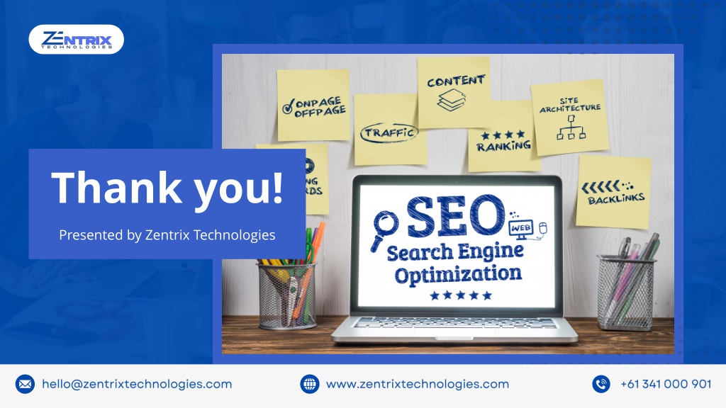 hello@zentrixtechnologies.com www.zentrixtechnologies.com +61 341 000 901 • Thank you! • Presented by Zentrix Technologies