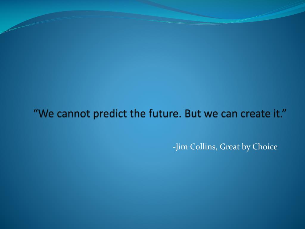 “We cannot predict the future. But we can create it.” -Jim Collins, Great by Choice