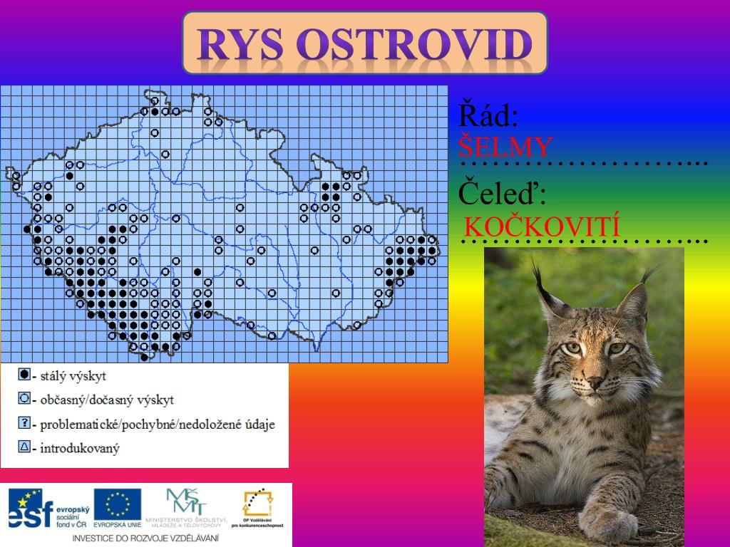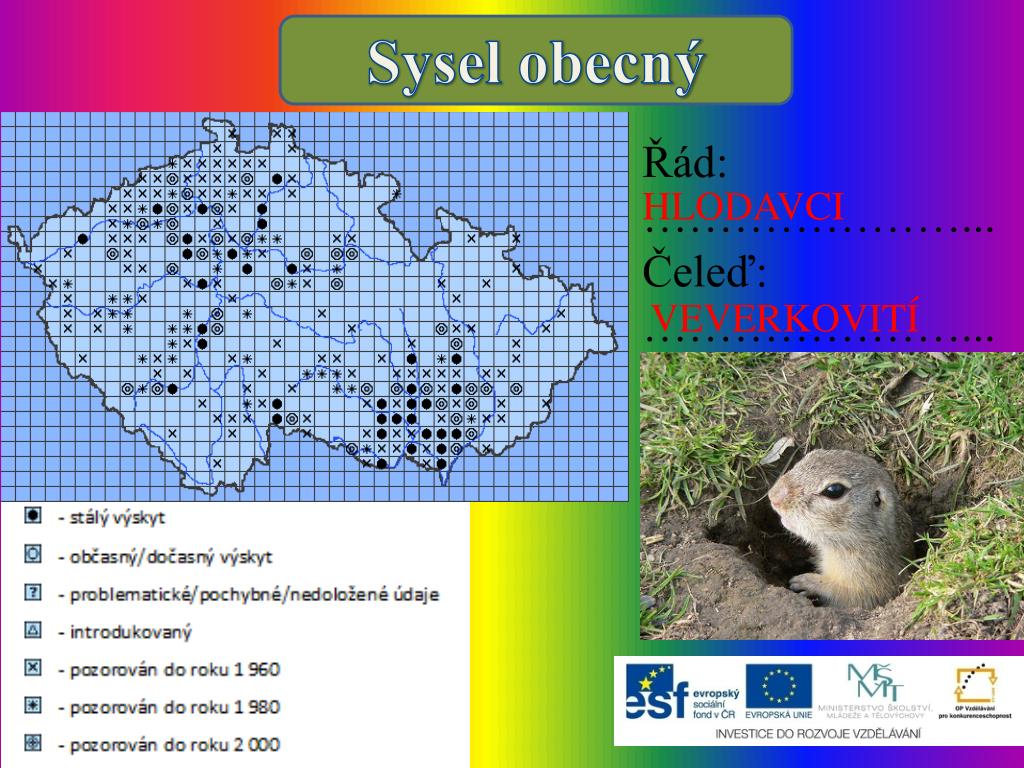 Zdroje • Anděra M. (2013): Mapa rozšíření Myotismyotis v České republice. In: Zicha O. (ed.) BiologicalLibrary – BioLib. Citováno 30.10.2013. Dostupné na: http://www.biolib.cz/cz/taxonmap/id91/ • Myotis. In: Wikipedia: the free encyclopedia [online]. San Francisco (CA): Wikimedia Foundation, 2001- [cit. 2013-10-30]. Dostupné z: http://upload.wikimedia.org/wikipedia/commons/c/c7/Myotis.jpg • Anděra M. (2013): Mapa rozšíření Spermophiluscitellus v České republice. In: Zicha O. (ed.) BiologicalLibrary – BioLib. Citováno 30.10.2013. Dostupné na: http://www.biolib.cz/cz/taxonmap/id18/ • EuropäischerZieselausErdlochguckend. In: Wikipedia: the free encyclopedia [online]. San Francisco (CA): Wikimedia Foundation, 2001- [cit. 2013-10-30]. Dostupné z: http://upload.wikimedia.org/wikipedia/commons/thumb/9/90/Europ%C3%A4ischer_Ziesel_aus_Erdloch_guckend.jpg/800px-Europ%C3%A4ischer_Ziesel_aus_Erdloch_guckend.jpg • Anděra M. (2013): Mapa rozšíření Canis lupus v České republice. In: Zicha O. (ed.) BiologicalLibrary – BioLib. Citováno 30.10.2013. Dostupné na: http://www.biolib.cz/cz/taxonmap/id53/ • Canis lupus. In: Wikipedia: the free encyclopedia [online]. San Francisco (CA): Wikimedia Foundation, 2001- [cit. 2013-10-30]. Dostupné z: http://upload.wikimedia.org/wikipedia/commons/2/23/Canis_lupus.jpg • Anděra M. (2013): Mapa rozšíření Castor fiber v České republice. In: Zicha O. (ed.) BiologicalLibrary – BioLib. Citováno 30.10.2013. Dostupné na: http://www.biolib.cz/cz/taxonmap/id60/ • Beaver pho34. In: Wikipedia: the free encyclopedia [online]. San Francisco (CA): Wikimedia Foundation, 2001- [cit. 2013-10-30]. Dostupné z: http://upload.wikimedia.org/wikipedia/commons/c/cc/Beaver_pho34.jpg • Power Station Dětmarovice 2010. In: Wikipedia: the free encyclopedia [online]. San Francisco (CA): WikimediaFoundation, 2001- [cit. 2013-10-30]. Dostupné z: http://upload.wikimedia.org/wikipedia/commons/thumb/8/80/Power_Station_D%C4%9Btmarovice_2010.jpeg/800px-Power_Station_D%C4%9Btmarovice_2010.jpeg