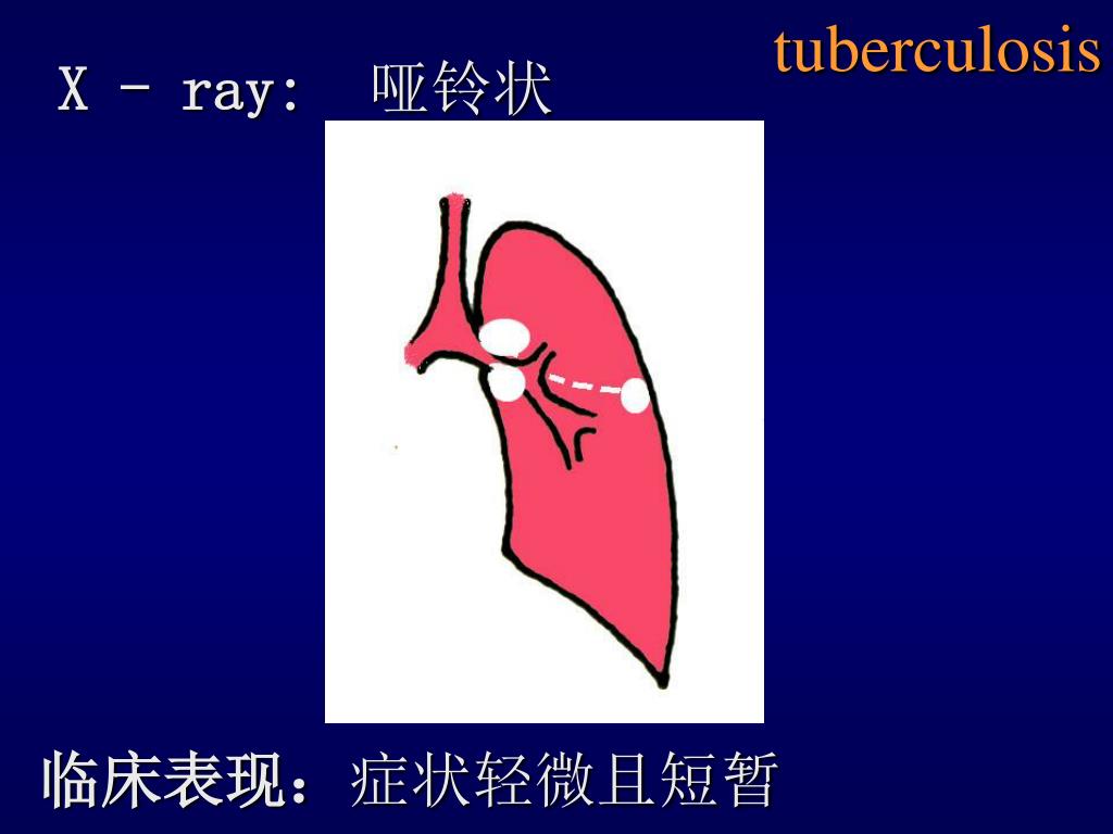 tuberculosis X - ray:哑铃状 临床表现:症状轻微且短暂