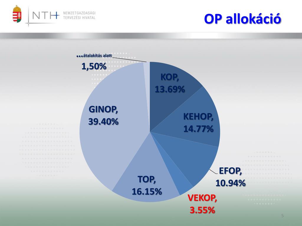 A VEKOP tervezett prioritástengelyei és indikatív forrásallokációja