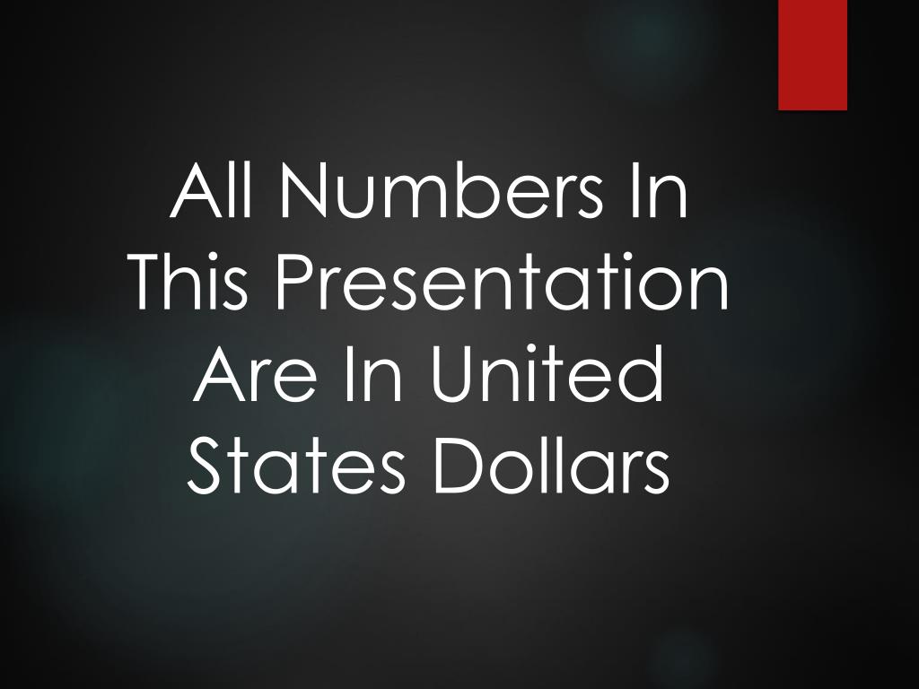 All Numbers In This Presentation Are In United States Dollars