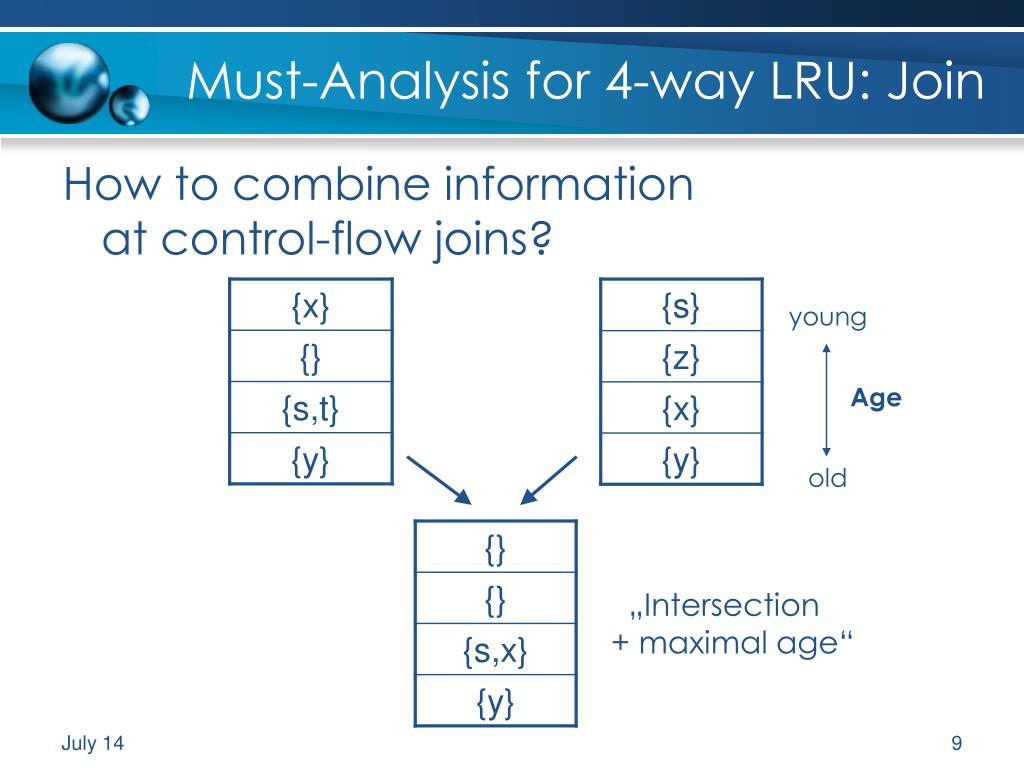 young Age old Must-Analysis for 4-way LRU: Join How to combine information at control-flow joins? „Intersection + maximal age“